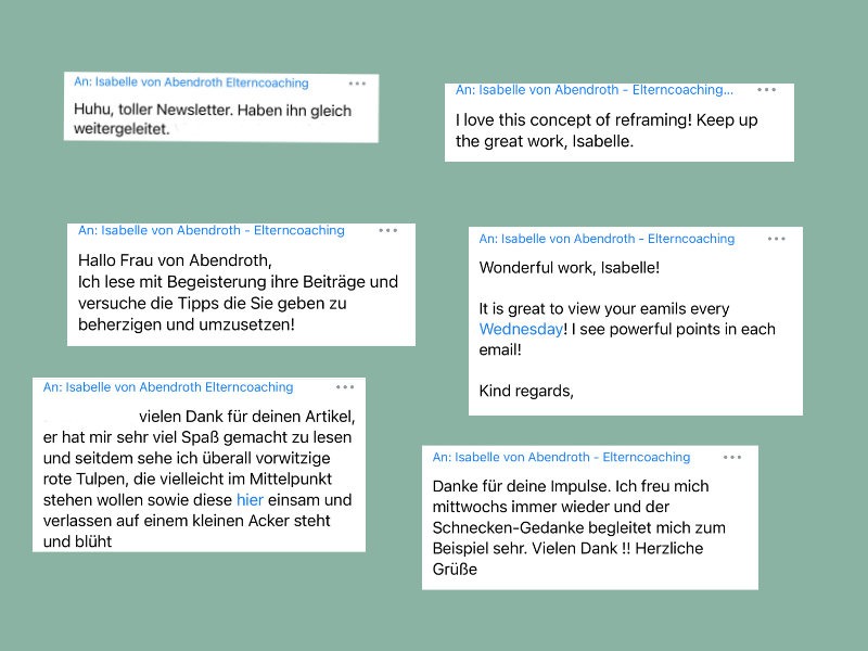- Jeden Mittwoch einen Impuls für Eltern – der Newsletter mit Ideen und Wissen rund ums liebevolle Begleiten Deines Kindes